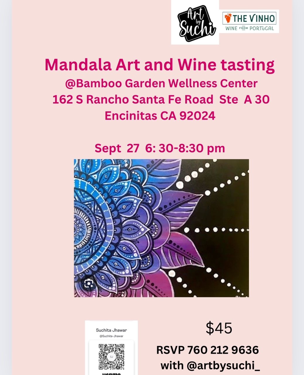Join us for a fun and relaxing evening of painting and sipping! We will be creating a beautiful mandala design while enjoying a glass of wine. Mandala art is known for its intricate patterns and calming effects, making it the perfect activity to unwind and express your creativity. Our experienced instructor, Suchi, will guide you step by step, so no prior painting experience is necessary. All materials will be provided, including a canvas, paint, and brushes. Come alone or bring some friends for a night of art and fun.